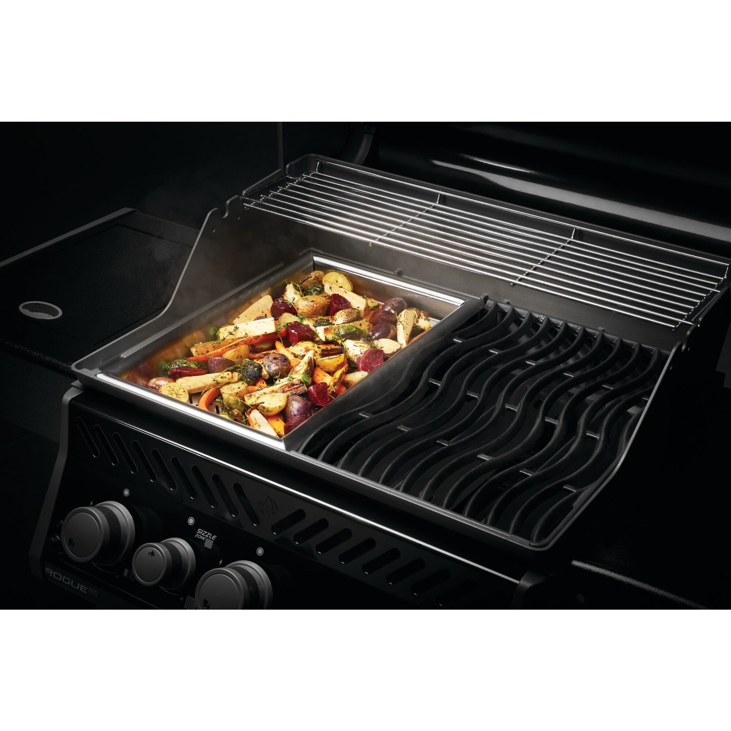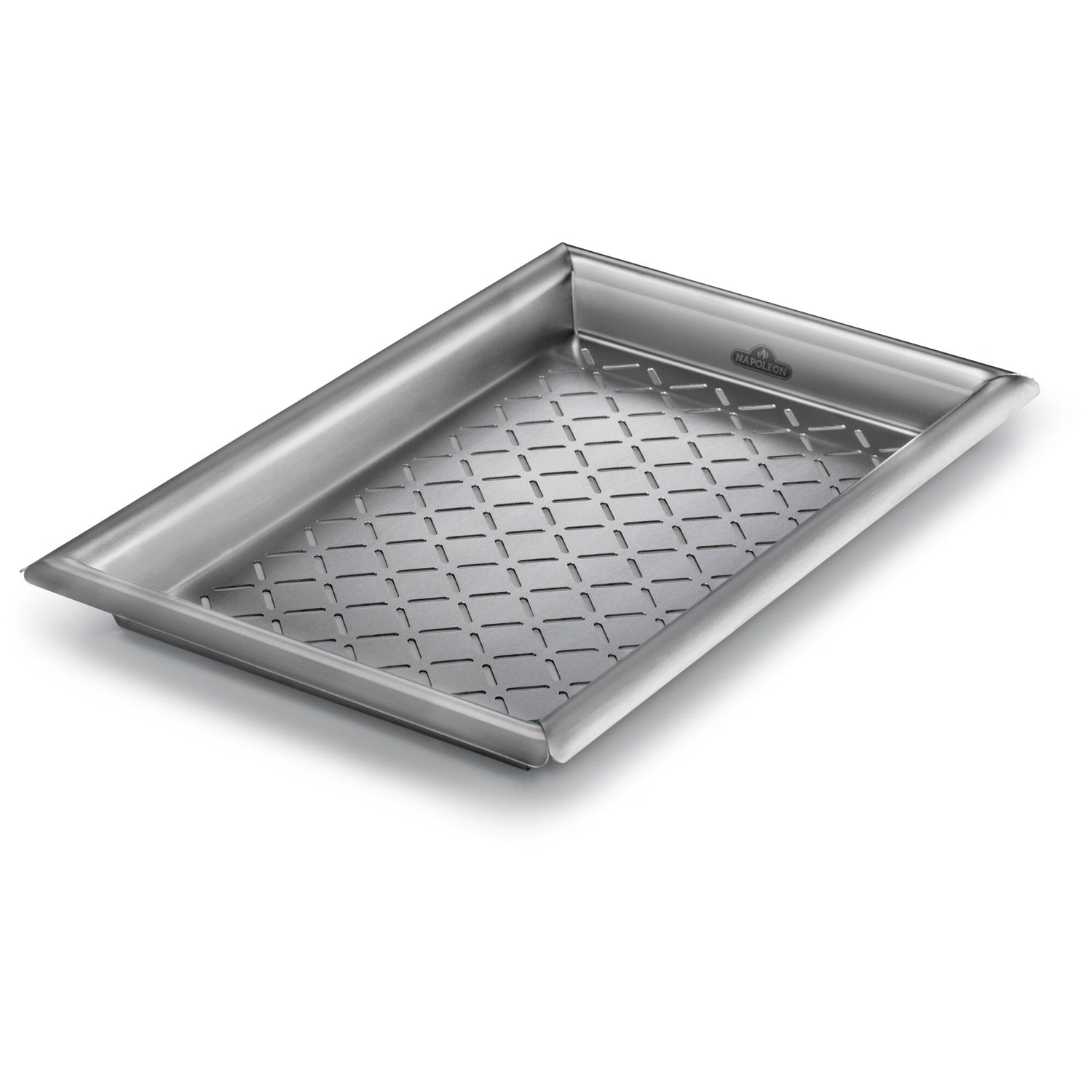 Prepare vegetales, guarniciones y platos más pequeños con la tapa de acero inoxidable. Esta gran cesta de acero inoxidable cuenta con espacios para dejar pasar el humo, mientras que cuenta con suficiente espacio para lograr un excelente sellado en pequeños alimentos. Diseñada para asar pequeños vegetales, patatas, mariscos y cualquier otra cosa que pueda caerse por las rejillas para cocinar o necesite estar contenida. Los bordes altos garantizan que nada se escape mientras prepara una deliciosa comida. La tapa tiene suficiente lugar para cocinar alimentos para alimentar a cuatro o más personas cuando prepara una deliciosa barbacoa. Las manijas integradas permiten la fácil ubicación y el traslado desde la zona de preparación hasta la parrilla. Recuerde que el metal se calienta cuando se lo coloca sobre la parrilla, así que, al moverla luego de cocinar, use guantes resistentes al calor. Con su practicidad, múltiples funciones y fácil mantenimiento, los accesorios para barbacoa de Napoleon representan un beneficio para cualquier cocina. Nuestros accesorios le proporcionan lo esencial para crear deliciosos platos asados, además de opciones para potenciar su arsenal de cocina con una amplia variedad de agregados creativos para expandir sus horizontes culinarios.
