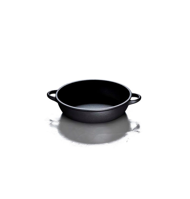 Porciones de pescado, arroz, guarnición, verduras, etc. El tamaño adecuado para servir directamente sobre la mesa utilizando el plato de basalto como posavasos. La sartén de 28 es ideal para servir juntos desde el centro de la mesa.