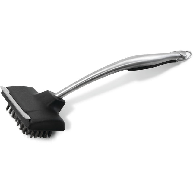 Use el cepillo para parrilla de acero inoxidable serie PRO de Napoleon para mantener limpias las rejillas de acero inoxidable de su parrilla. Una parrilla limpia es una parrilla feliz. Debe quitar con el cepillo todos los alimentos adheridos de su parrilla con un cepillo para parrilla después de cada vez que asa, mientras la parrilla todavía está caliente, y nuevamente antes de asar su próxima comida. Las cerdas de acero inoxidable del cepillo para parrilla de acero inoxidable no dañarán las rejillas de acero inoxidable y durarán un largo tiempo. Este cepillo se adapta al resto de las herramientas para asar serie PRO. El cepillo para parrilla de acero inoxidable mide alrededor de 18 pulgadas (45 centímetros) y tiene un agarre engomado sobre su manija ergonómica, lo que le da ventaja para llegar a los alimentos adheridos difíciles, y tiene un raspador de metal sobre el cabezal para llegar a lugares particularmente difíciles. El cepillo para parrilla cuenta con un gancho para su fácil almacenamiento. Cuando el cabezal finalmente se desgaste, en lugar de comprar otro nuevo, Napoleon tiene cabezales de repuesto. Mantenga su parrilla limpia con el cepillo para parrilla de acero inoxidable serie PRO de Napoleon.