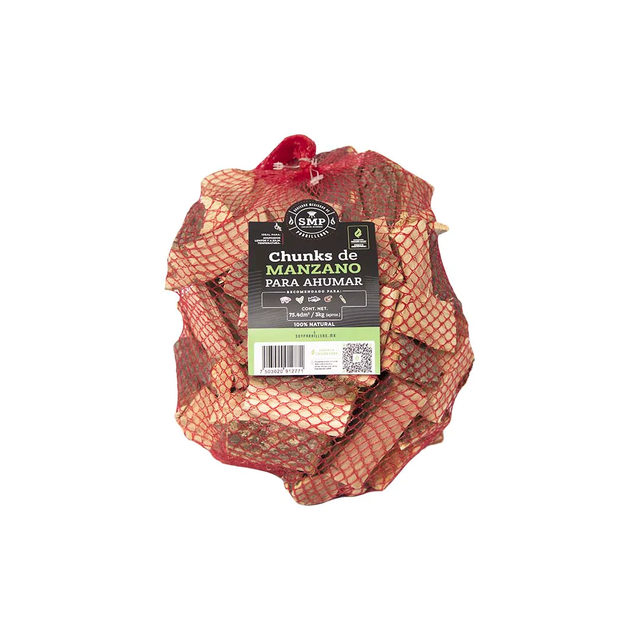 Los chunks son ideales para utilizarse en ahumados de mayor tiempo. La madera de manzano otorga un sabor a humo de suave a medio.