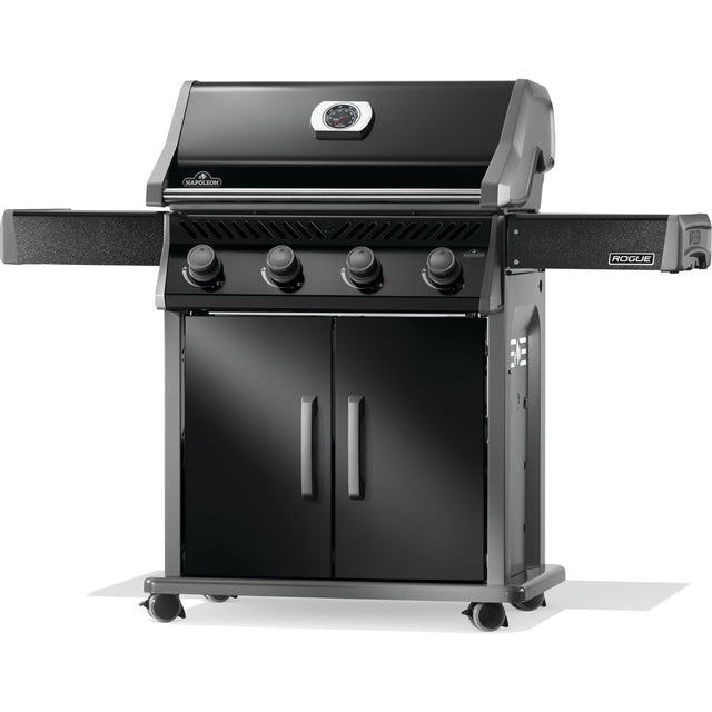 La elegante parrilla negra de gas propano Rogue® 525 de Napoleon es una mejora moderna para su espacio al aire libre. Consiga las mejores marcas de sellado con nuestras rejillas para cocinar Wave con forma de onda de acero inoxidable. Los cuatro quemadores de acero inoxidable garantizan un control de temperatura preciso y las placas de sellado de doble nivel vaporizan los jugos de los alimentos para intensificar los sabores. Con una superficie para asar de 0,34 m2 (525 in2), puede elaborar comidas deliciosas para cualquier ocasión. La tapa de porcelana y la estructura con revestimiento de pintura en polvo son fáciles de mantener y combinan a la perfección con su decoración exterior. Las rueditas con bloqueo facilitan el traslado y los estantes laterales plegables de acero inoxidable ahorran espacio. Disfrute de la versatilidad, la calidad y la asequibilidad inigualables de esta parrilla de gas de la serie Rogue® de Napoleon.